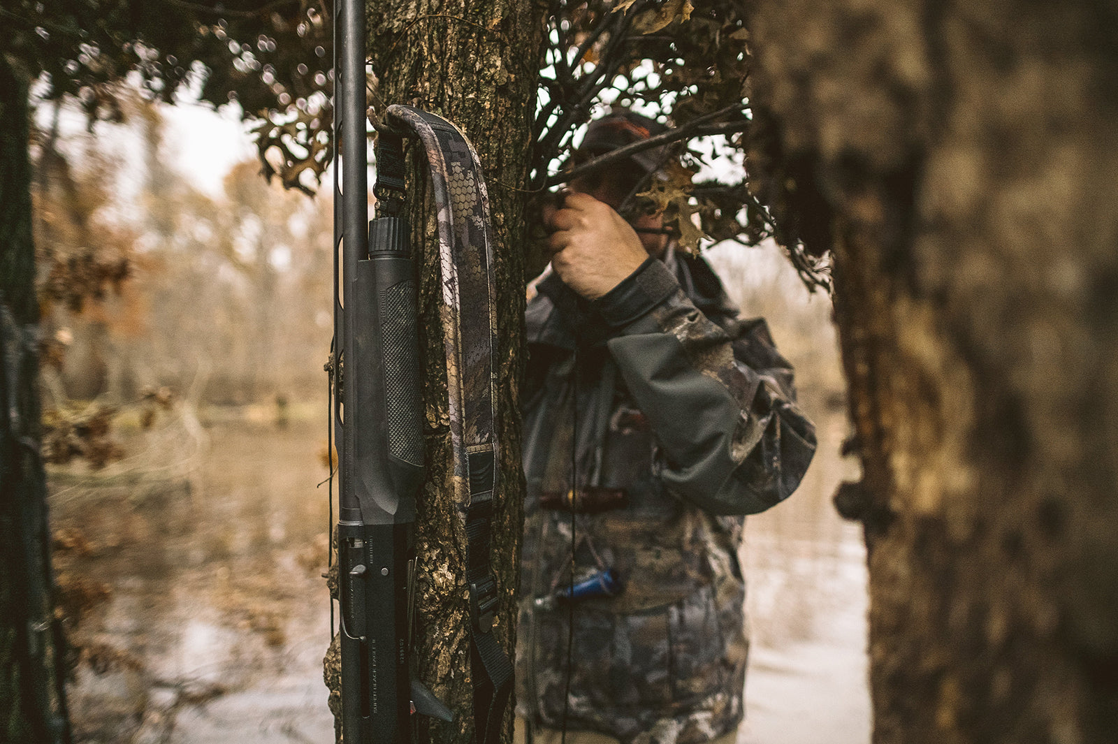 The Optifade pattern gun sling allows you to carry your gun with comfort and convenience. Featuring proprietary stretch material, our sling absorbs shock as you move through the field. And because it is slip-resistant, you can rest assure that the sling will rest securely on your shoulder on those long hikes to the blind. Equipped with heavy duty swivels and an adjustable nylon strap, this sling will appeal to any hunter or shotgun.