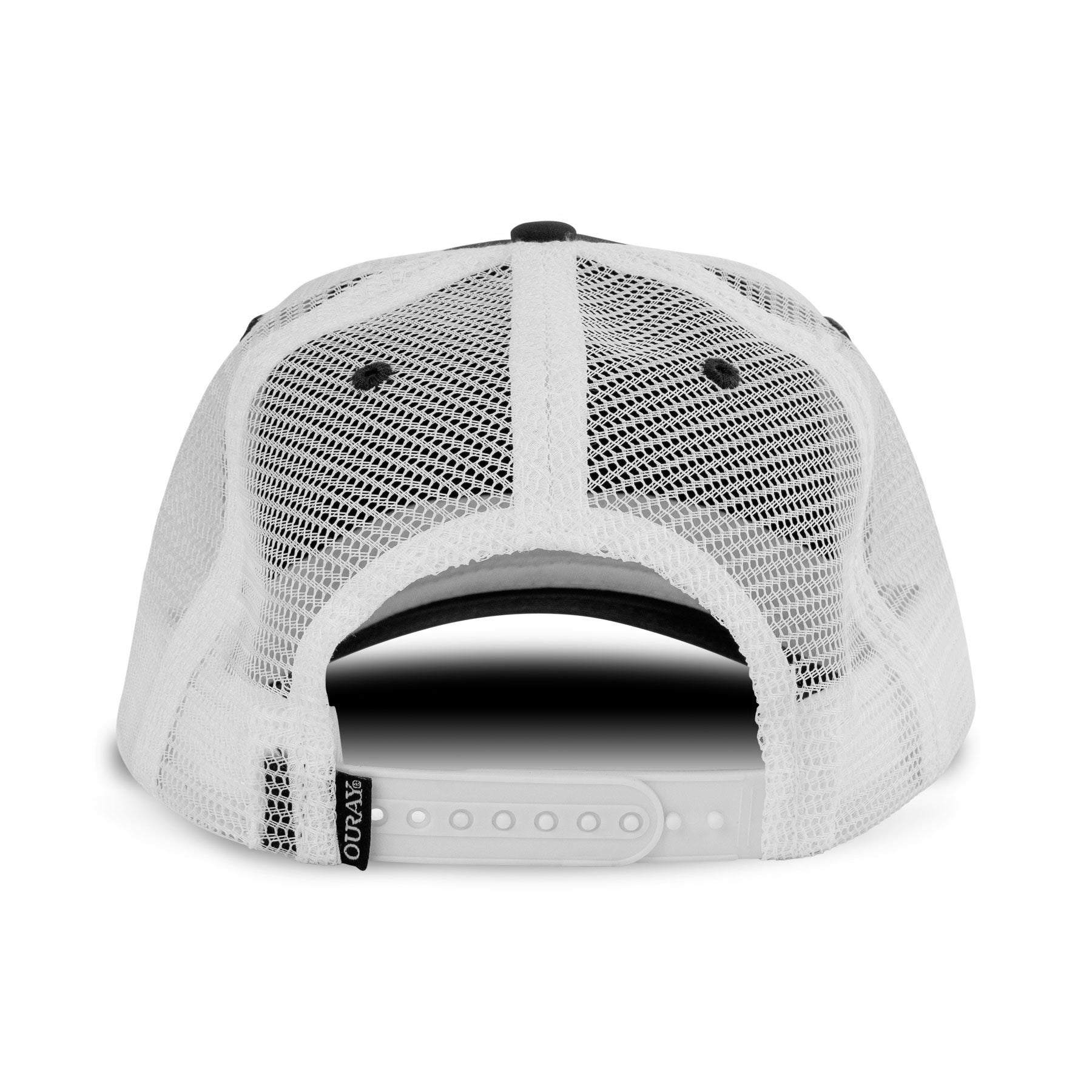 ALL SALES FINAL: NO RETURNS Color: Grey / White - 100% Recycled contrast stitch mesh backed cap